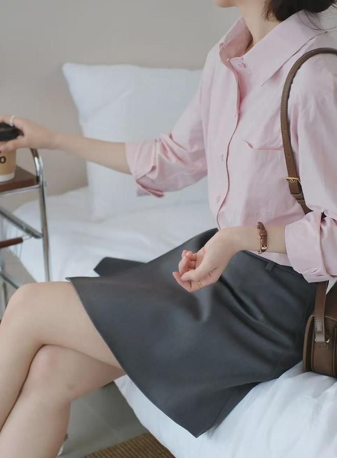 下半身搭配黑色、黑色、棕色系长裤短裤半裙等等,都很清爽可人,穿对立刻从早八路人变身韩剧大女主!