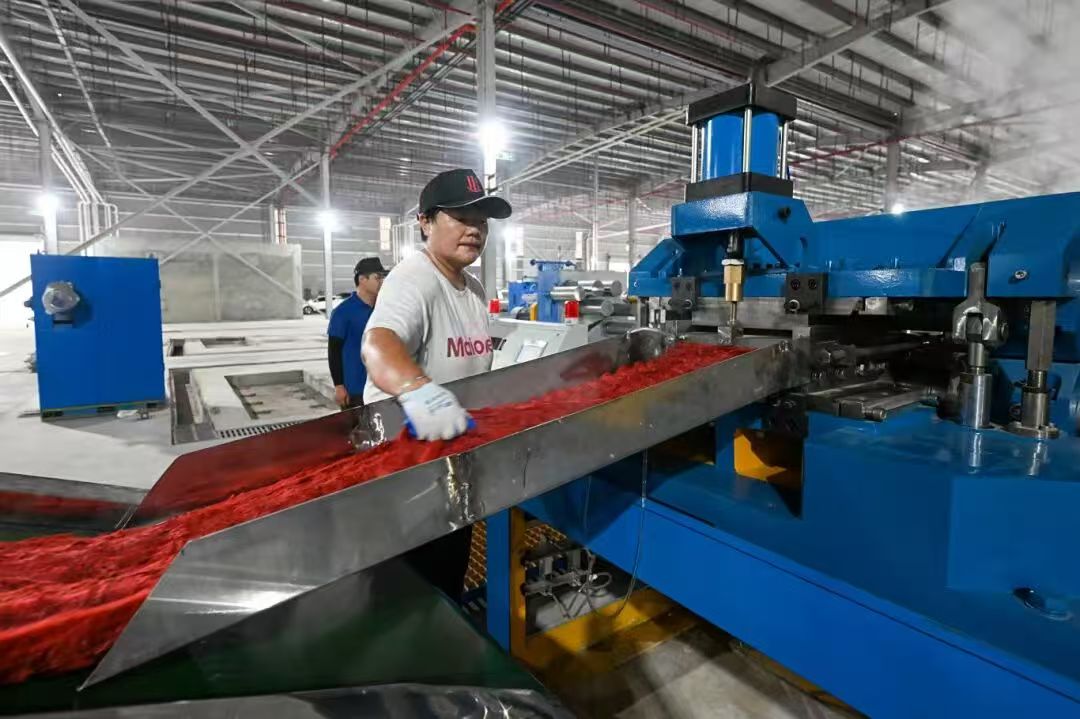 福建佳利仑纤维科技有限公司则掌握了“原液着色”核心技术,能在纤维生产的全部过程中直接完成着色,省去了下游企业传统高能耗、高污染的印染环节。“从源头上推动纺织产业绿色低碳转型。”佳利仑负责人陈伟表示,这项技术让他们的产品在市场上供不应求,项目全面投产后,预计可年产再生聚酯切片15万吨、再生有色涤纶短纤20万吨,年产值约15亿元。